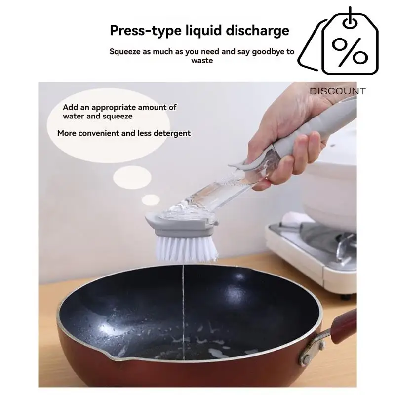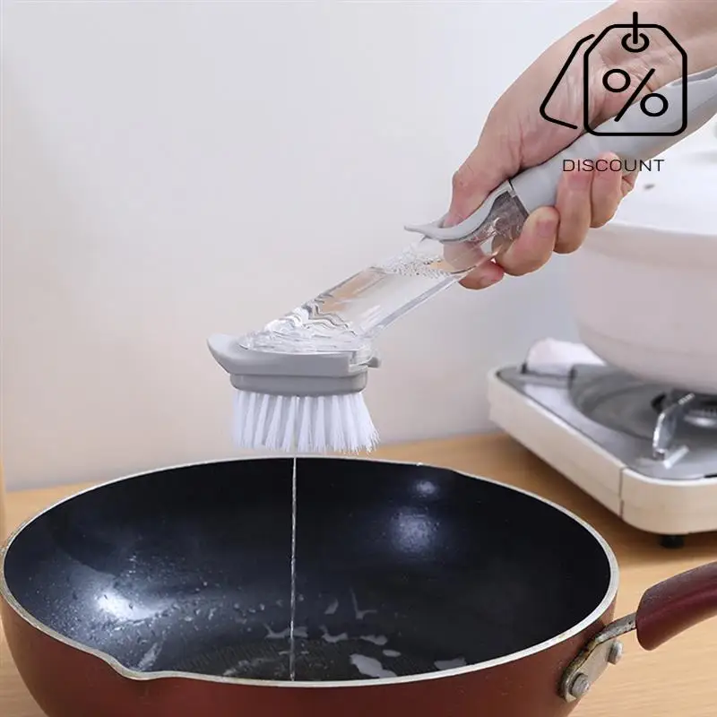 AB35-Hydraulic Kitchen Pot Brush Cleaner With Soap Dispenser, Long Handle Multi-Functional Dishwashing Brush